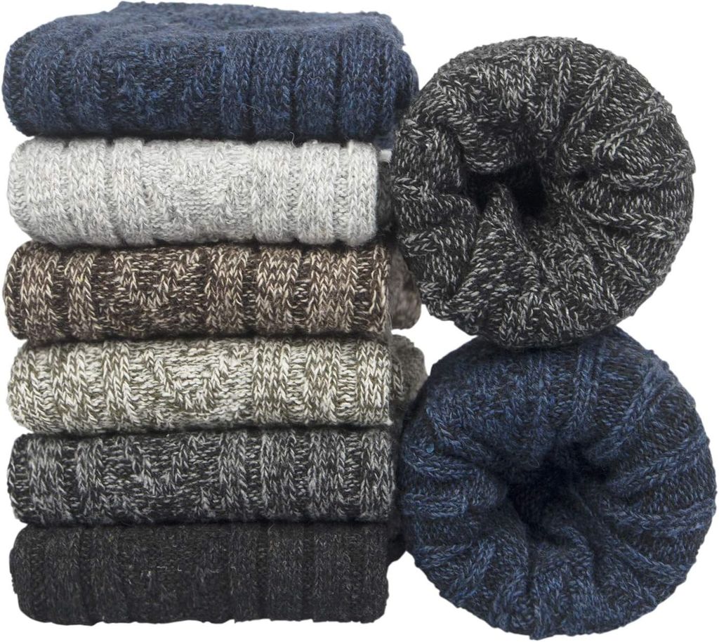 YSense 6pares Calcetines Lana Merino Antideslizantes Calcetines Gruesos Cálidos Invierno Ocasionales Calcetines senderismo premium transpirables para Hombres Mujeres Multicolor 6 EU 38-45