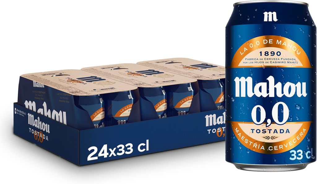 Mahou 0,0 Tostada, Pack de 24 Latas x 33 cl, Cerveza Lager Refrescante, Ligera y Suave, Sabor Auténtico, Cerveza 0.0% Vol Alcohol