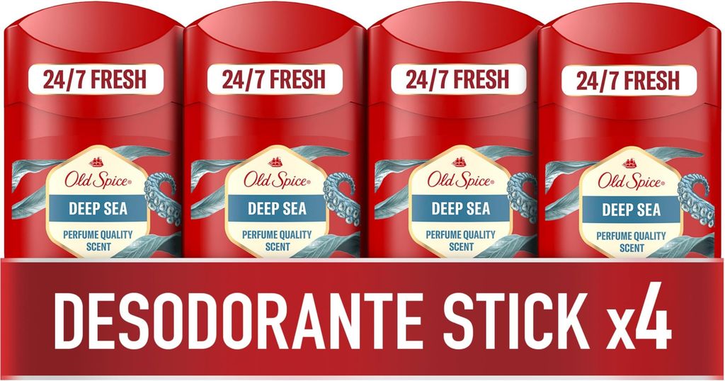 Old Spice Deep Sea Desodorante En Barra Para Hombres 4x50ml, Fresco 24 Horas, Todos Los Días Con Uso Diario, Perfume Duradero, Fragancia Excepcional, Protección Contra El Mal Olor