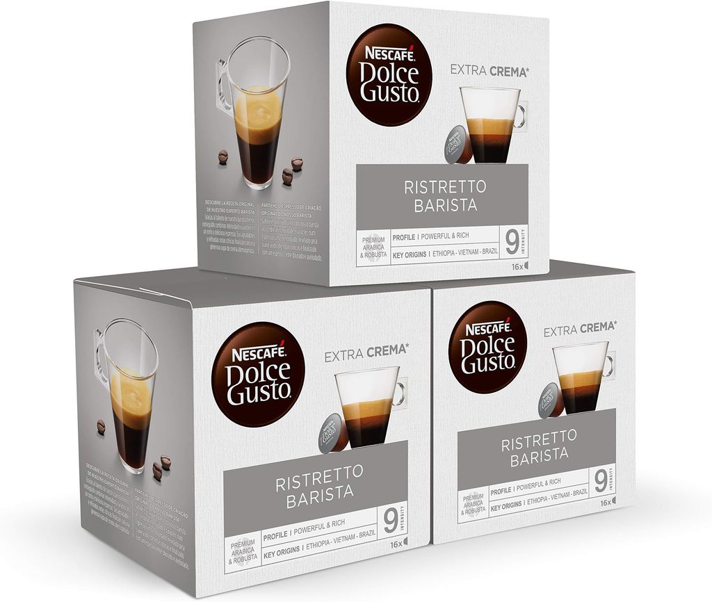 NESCAFÉ Dolce Gusto Ristretto Barista - Cápsulas de Café, 48 Cápsulas (3 x 16) - Espresso fuerte - Intensidad 9 - Café de tueste intenso - Originales para cafeteras Dolce Gusto
