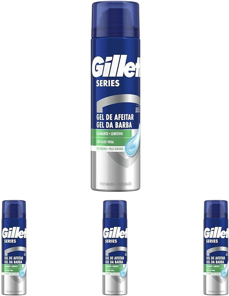 Gillette Series Gel De Afeitar Calmante Con Aloe Vera, Para Maquinilla De Afeitar Para Hombre 200ml (Paquete de 4)