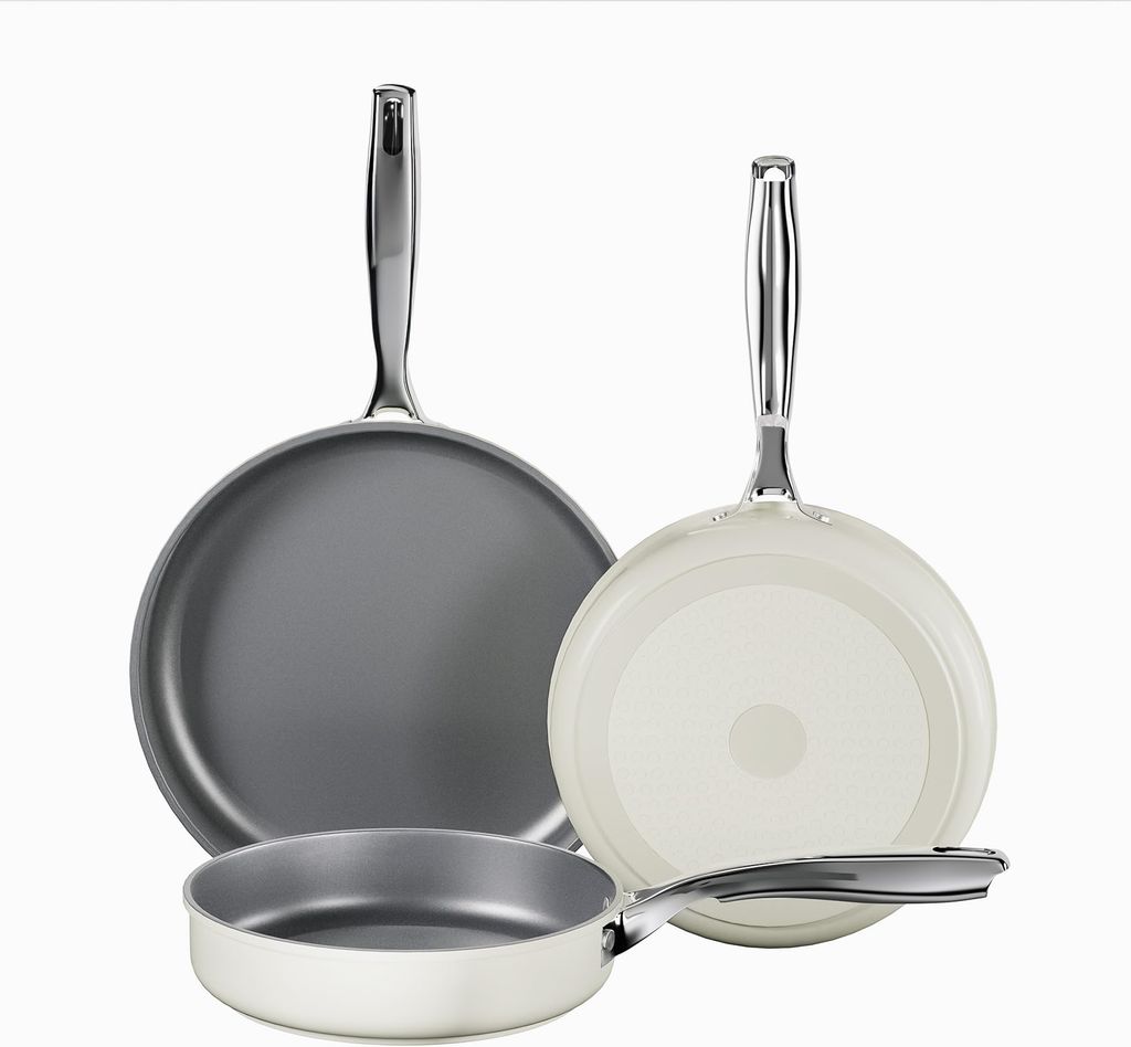 Koch Kode Juego de 3 Sartenes Antiadherentes 20/24/28cm, Sarten de Induccion Con Revestimiento Ceramica, Apto Para Lavavajillas, Sin PFOA ni PTFE ni PFAS, Blanco Lechoso