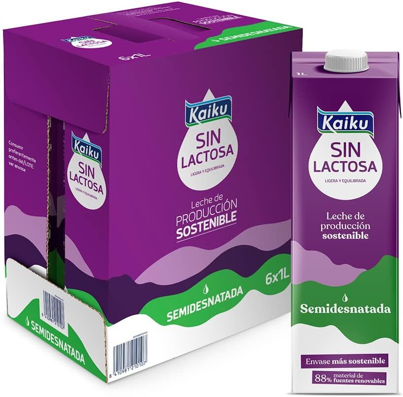 La leche Kaiku Sin Lactosa Semidesnatada es la solución nutricional definitiva para todas aquellas personas que desean disfrutar del placer de un buen vaso de leche sin sufrir las molestias de la pesadez digestiva. Al eliminar la lactosa mediante un proceso natural de adición de lactasa, Kaiku permite que el organismo procese los lácteos de forma ligera y cómoda, evitando la hinchazón y los gases. Este pack de 6 litros es ideal para asegurar el abastecimiento semanal de una familia, ofreciendo una leche que mantiene intactas todas las propiedades, proteínas y el sabor delicioso de la leche de vaca tradicional.