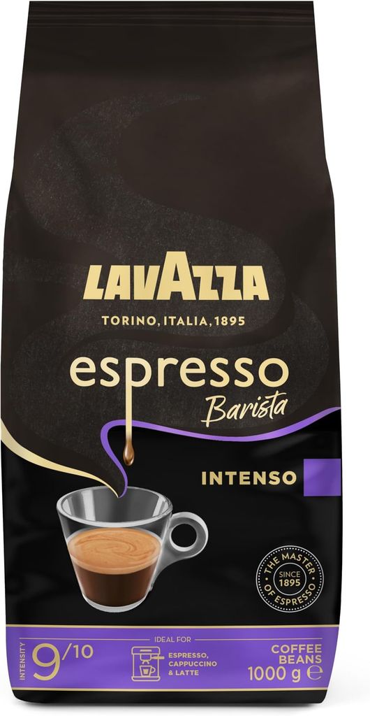 Lavazza, Espresso Barista Intenso, Café en Grano Natural Tostado, Ideal para Máquina de Café Espresso o Superautomática, con Notas Aromáticas de Cacao y Madera, Intensidad 9/10, Tueste Medio, 1 kg