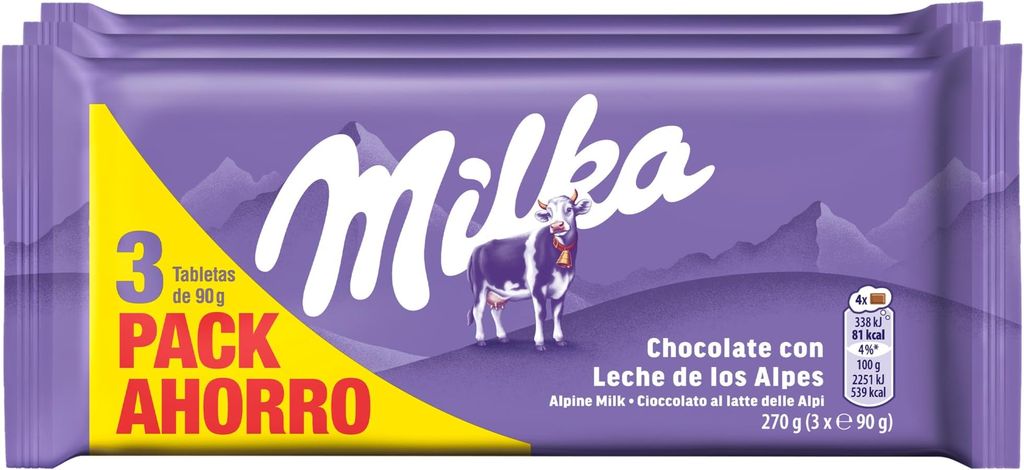 Milka Chocolate con Leche de los Alpes, Pack Ahorro 3 Tabletas, 90 g
