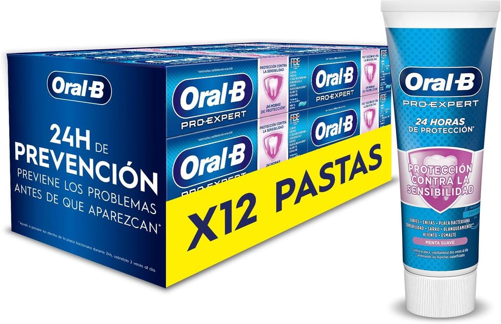 Oral-B Pro-Expert Sensibilidad y Blanqueamiento Pasta De Dientes, Pack 12x75 ml, Dentífrico Para Dientes Sensibles, Sabor A Menta