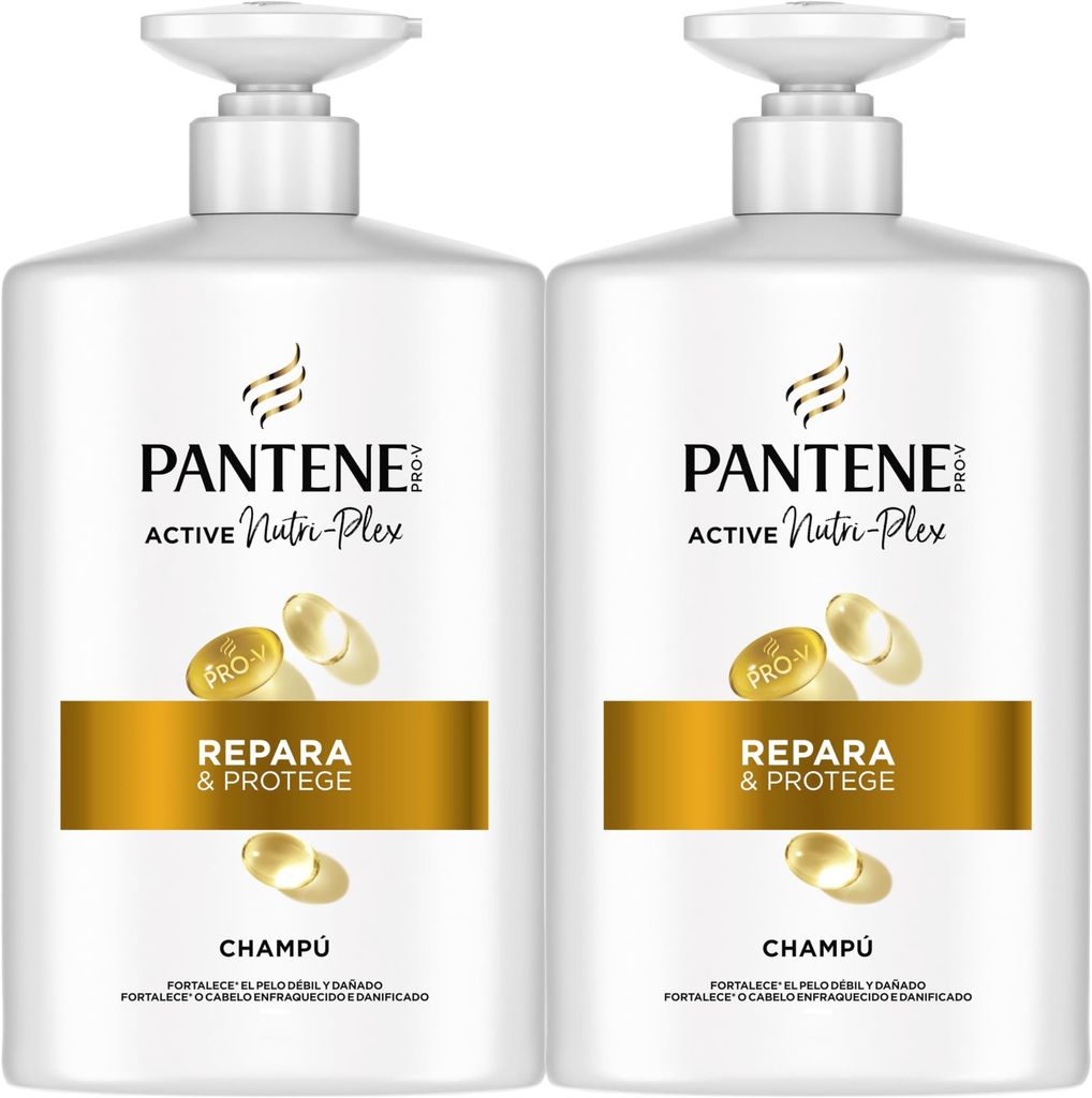 Pantene Pro-V Repara Y Protege Champú 2x1000ML, Dispensador, Pelo Seco Y Dañado. Limpia Y Protege Los Enlaces Capilares. Sin Siliconas. Active Nutri-Ple