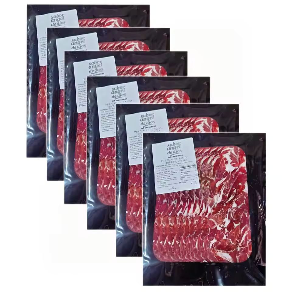 PETALOS DE JAMON IBERICO SABOR ANGEL DE DIOS - 6 SOBRES, 150GR CADA UNO - TOTAL 900GR - ETIQUETA NEGRA