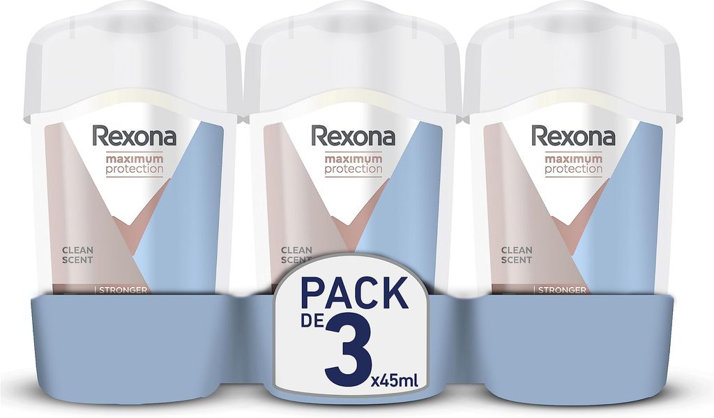 Rexona Maximum Protection Desodorante para mujer en barra Antitranspirante Clean Scent, 45 ml (Paquete de 3)