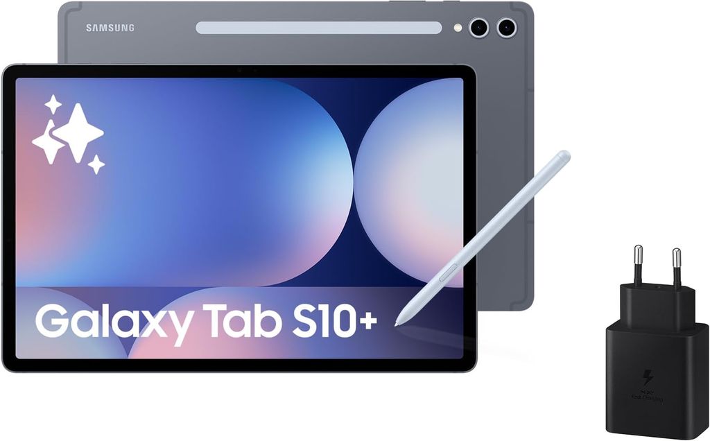 Samsung Galaxy Tab S10+ 256GB + Cargador - Tablet IA, Tableta Android Wifi, 12GB RAM, Pantalla AMOLED, Antirreflejos, S Pen Incluido, Gris (Versión Española)