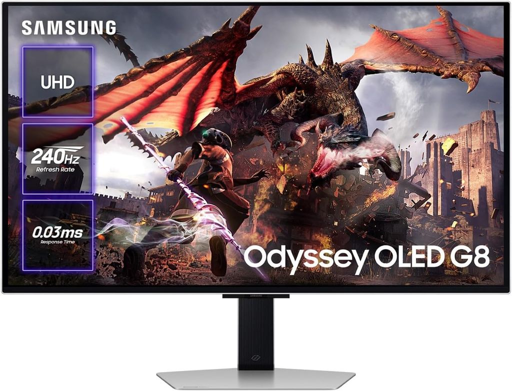 Samsung 32" Monitor Odyssey OLED G8 UHD 3840 x 2160, 16:9, 240Hz, 0,03ms, FreeSync Premium Pro, G-Sync Compatible, Antirreflejos, Burn-in Safeguard, Modo Eye Saver, Flicker Free, LS32DG802SUXEN, 2025