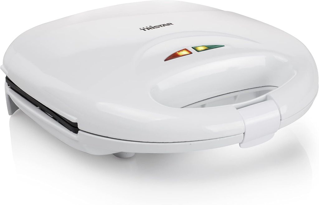 Tristar SA-3050 Sandwichera grill con placas de parrilla, tamaño compacto con compartimento para cable, potencia de 750 W, recubrimiento antiadherente, color Blanco
