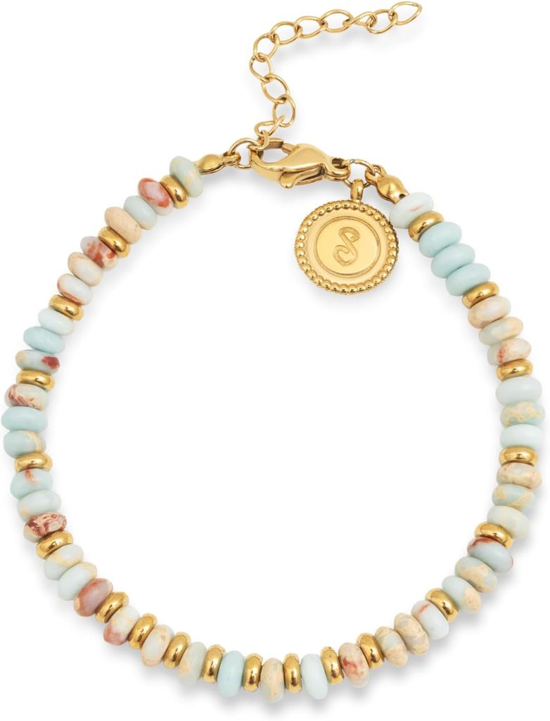 SINGULARU - Pulsera Full Daylight. Acero con Acabado en Baño Oro de 18Kt. Cristales de Colores y Beans en Acero. Joyas para Mujer