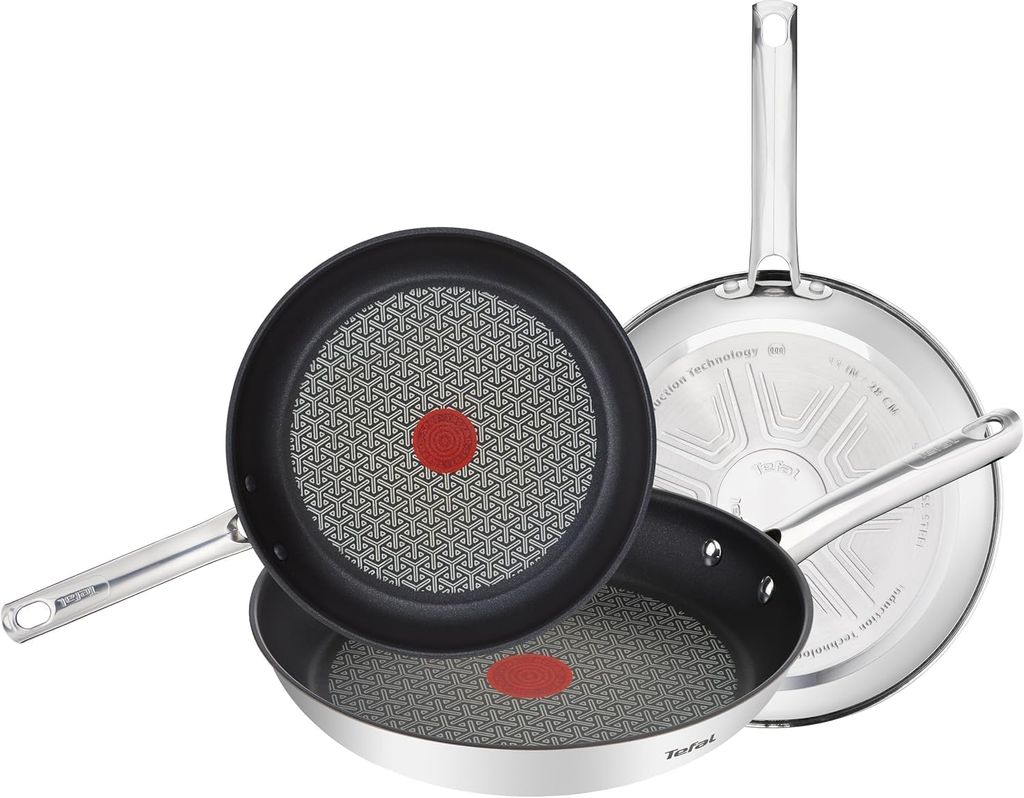 Tefal Duetto - Juego de Sartenes de 20/24/28 cm, Apto inducción, antiadherente, revestimiento titanio, Thermo-signal, apto lavavajillas y horno, acero inoxidable