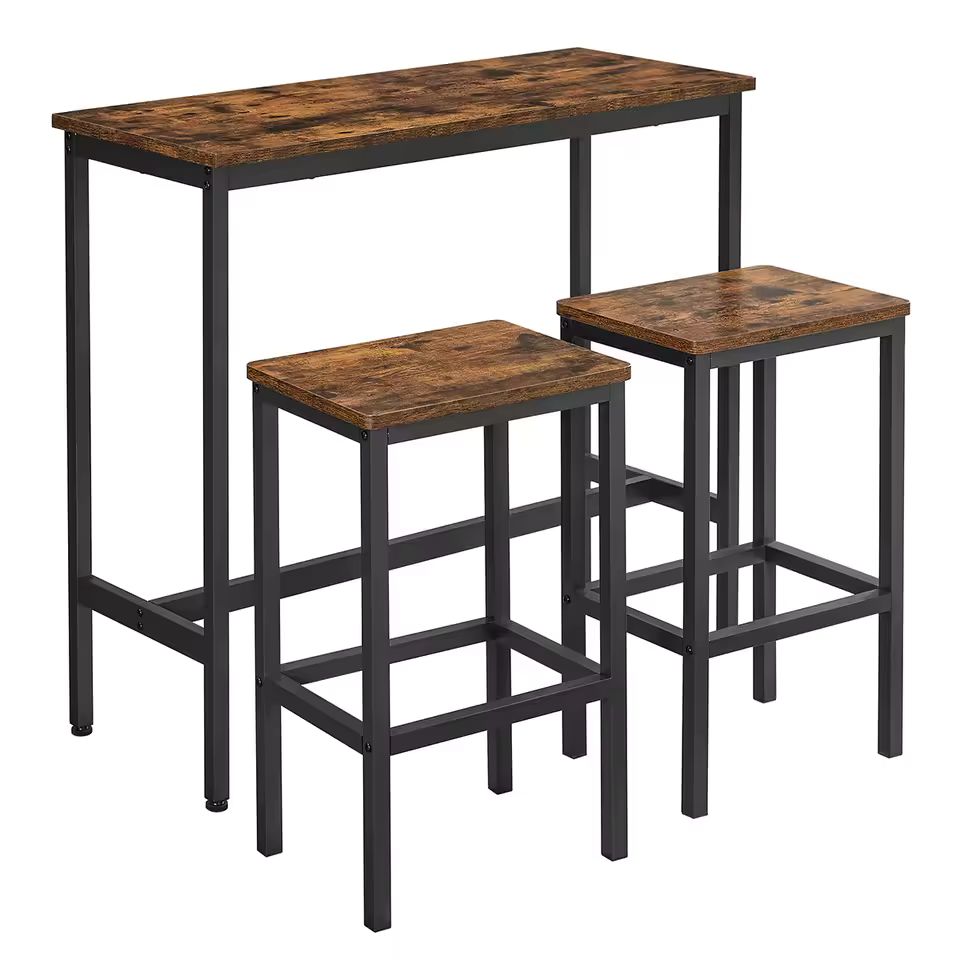 Transforma ese rincón vacío de tu cocina o salón en un espacio acogedor y funcional con el juego de mesa y taburetes de bar VASAGLE. Este conjunto destaca por su inconfundible estilo industrial, combinando la calidez de la madera en tono marrón rústico con la robustez de una estructura de acero negro. Es la elección perfecta para quienes buscan aportar un toque de diseño moderno tipo loft a su hogar sin renunciar a la practicidad y la durabilidad de los muebles de uso diario.