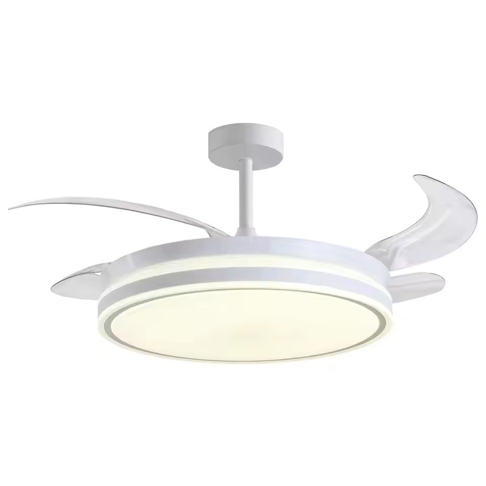 Transforma el ambiente de tu hogar con el ventilador de techo ATENAS de BEL AIR HOME, una pieza que fusiona a la perfección la funcionalidad de climatización con el diseño moderno de iluminación. Lo que hace verdaderamente especial a este modelo son sus aspas desplegables transparentes. Cuando el ventilador está apagado, las aspas se retraen y quedan ocultas, convirtiendo el aparato en una elegante lámpara de techo LED moderna. Cuando necesitas aire, las aspas se despliegan automáticamente gracias a la fuerza centrífuga, ofreciendo una solución estética "dos en uno" ideal para quienes no quieren renunciar a la decoración por el confort.