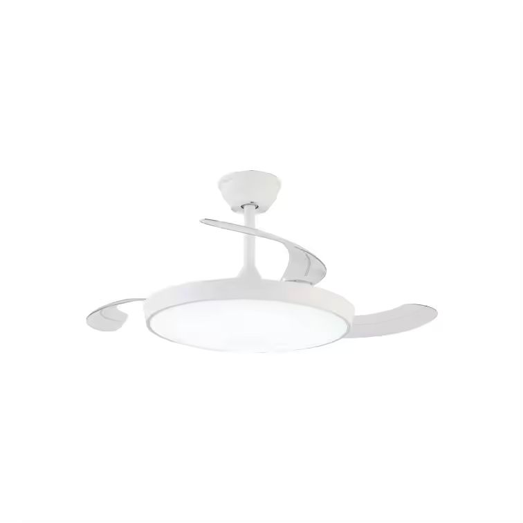 El ventilador de techo NARVI redefine el concepto de climatización e iluminación en el hogar, fusionando funcionalidad y estética minimalista. Su característica más innovadora son las palas retráctiles: cuando el ventilador está apagado, las aspas se pliegan y se ocultan automáticamente, dejando a la vista únicamente una elegante lámpara de techo moderna. Esto soluciona el problema visual de los ventiladores tradicionales, que a menudo recargan la decoración de la estancia. Es la opción perfecta para quienes buscan frescor en verano pero no quieren renunciar al estilo durante el resto del año, integrándose discretamente en salones, dormitorios o comedores de cualquier estilo decorativo.